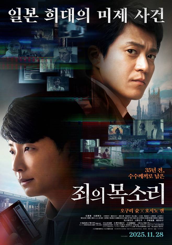 오는 28일 국내 극장 개봉을 확정한 영화 '죄의 목소리'는 영화 '죄의 목소리'는 공소시효가 지난 미해결 협박 사건을 파헤치는 신문기자 아쿠츠 에이지(오구리 슌)와, 자신의 목소리가 과거 범죄에 이용되었다는 사실을 알게 된 남자 소네 토시야(호시노 겐)가 사건의 진실에 다가서는 서스펜스 추적 드라마다.