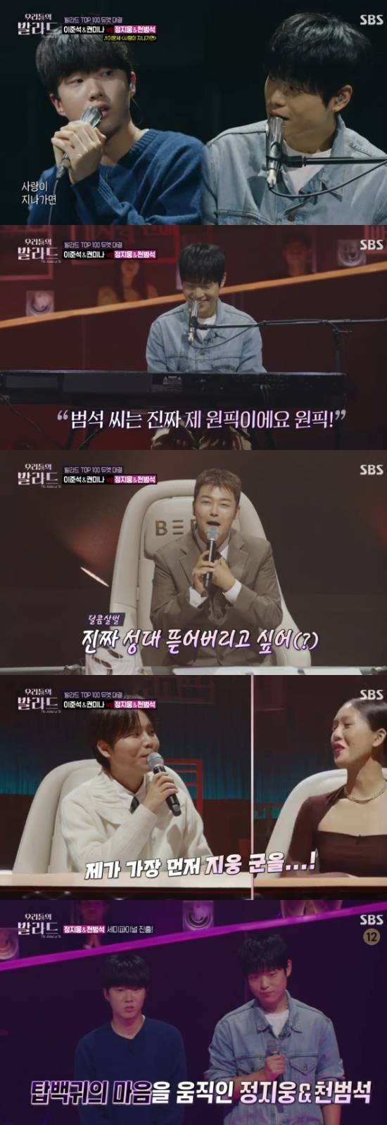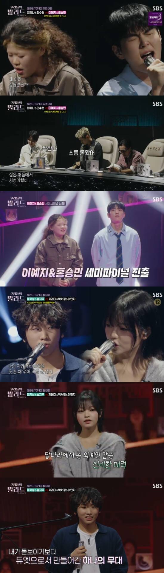 지난 11일 방송된 SBS 예능 프로그램 '우리들의 발라드'에서는 '한국인이 사랑한 발라드 TOP 100'을 주제로 3라운드 듀엣 경연이 펼쳐졌다.