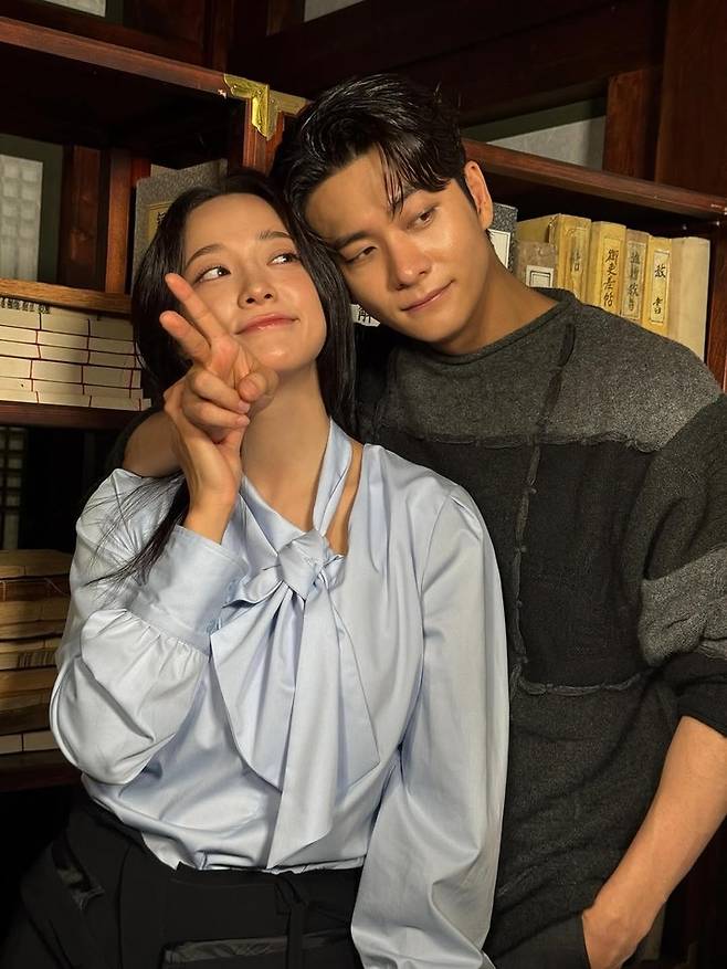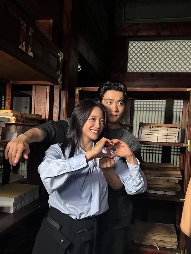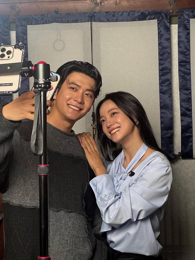 특히 서로 눈을 맞추며 미소 짓는 컷에서는 극 중 로맨틱한 서사를 예고하듯, 현실 커플 같은 자연스러운 분위기를 자아냈다.