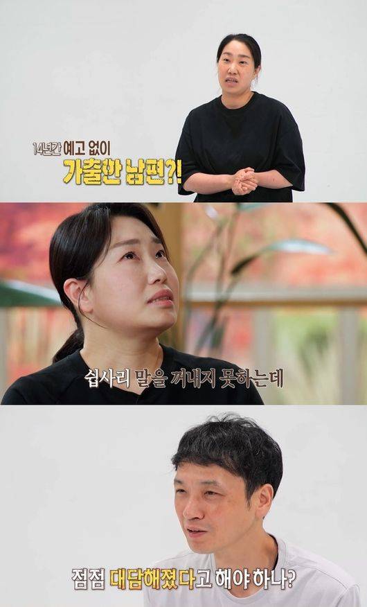 남편의 반복된 가출의 시작은 '술'이었다. 배관 설비와 철거 작업을 하는 남편은 육체적으로 고된 일이 끝나고 나면 동료들과 술을 마시는 것으로 스트레스를 푼다고. 이에 대해 남편은 "처음엔 외박 수준이었다. 술을 마시고 찜질방에서 자곤 했는데, 점점 대담해졌다. X 먹어 보라며 나간다"라고 당당하게 고백해 충격을 안긴다.