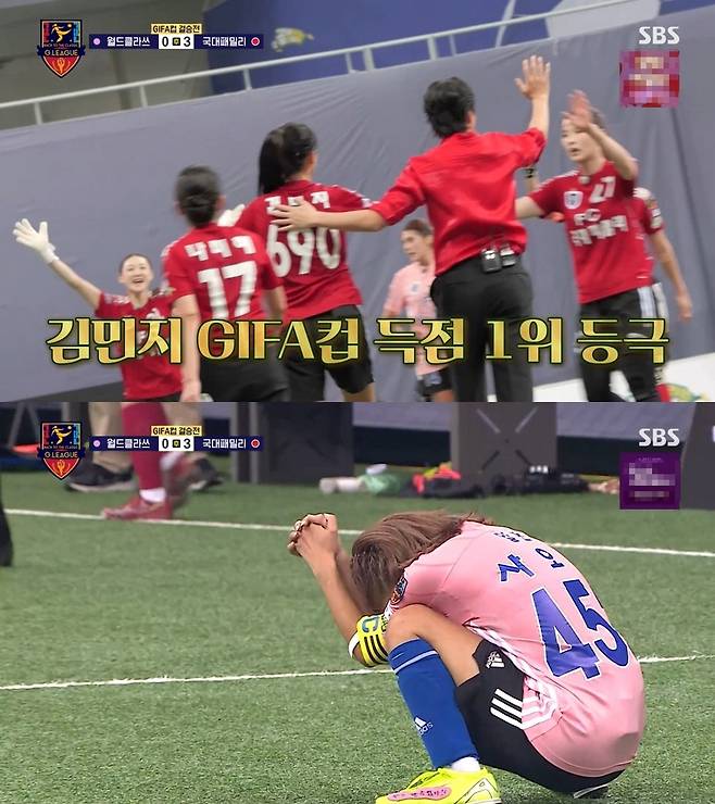 그리고 종료 직전 역시 상대 수비 틈을 뚫은 패스에 힘입어 김민지가 3대 0을 만드는 쐐기골로 확실한 마침표를 찍는 데 성공했다. 어떻게든 만회골을 넣기 위해 안간힘을 쓰던 월드클라쓰는 이번 실점으로 인해 결국 주저 앉을 수밖에 없었다.