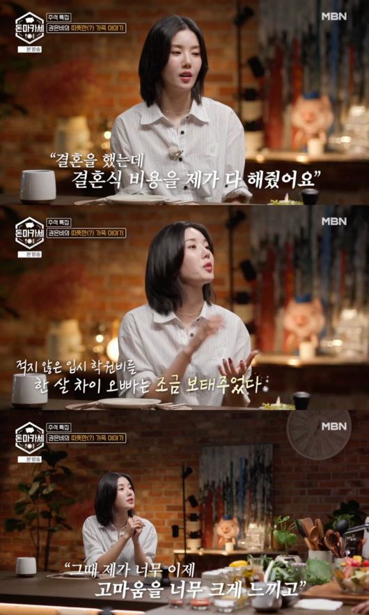 이어 권은비는 “저에게 1살 터울의 오빠가 있다. 오빠가 결혼할 때 결혼식 비용을 전부 제가 부담했다”고 고백했다. 모두를 놀라게 한 그는 “어릴 때 예고(예술고등학교)에 가고 싶었는데 부모님이 반대하셨다. 학원비도 많이 들어서 포기해야 하나 고민했는데, 그때 고등학생이던 오빠가 부모님 몰래 제 입시 학원비를 조금 보태줬다”고 회상했다.