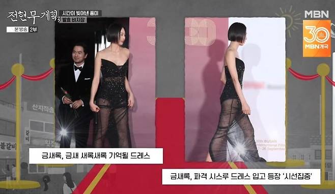 부국제 당시 파격적인 의상 사진을 보던 전현무는 "입다가 나온 거냐?"고 농담을 던졌고, 곽준빈은 "보통 의상을 누가 고르냐?"라고 물었다. 금새록은 "실은 스타일리스트 실장님과 고른 옷이 있는데, 그게 좀 더 위험했다. 고정이 잘 안 돼서 자꾸 풀리더라. 너무 위험해서 혹시 몰라 한 벌 더 가져간 의상을 입었다"며 의상 비하인드를 공개했다.