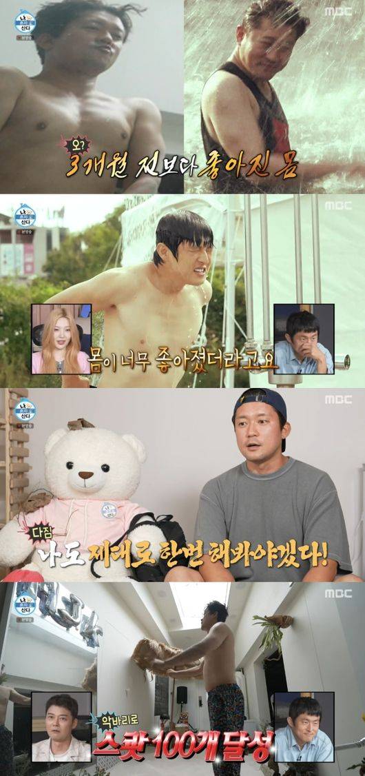 그렇게 김대호는 모래사장 위에서 스쾃 100개 달성 후 푸쉬업까지 하는 등 운동을 마치고 사우나에서 부기까지 빼며 여유를 즐겼다. 이후 샤워를 마치고 나온 그는 자신만의 레시피로 음식을 만들어 모래사장에서 피크닉을 즐겼다.