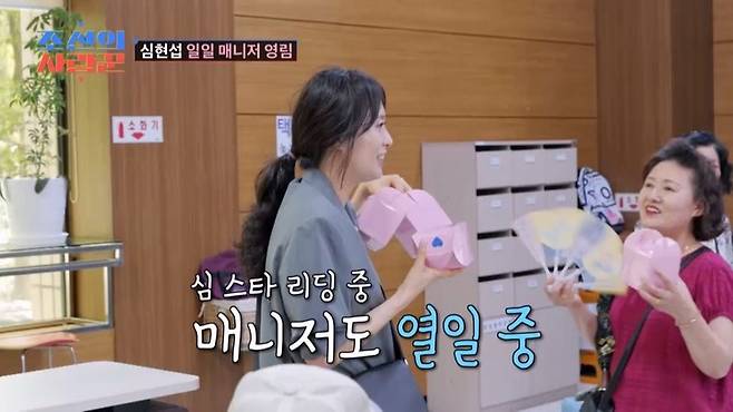 그리고 심현섭의 첫 출근 현장에 아내 정영림이 '일일 매니저'로 나섰다. 부부의 화기애애한 모습에 VCR 너머의 황보라는 "매니저랑 팔짱 끼면 안 되는데! 둘이 선 넘었다"는 농담으로 웃음을 자아냈다.