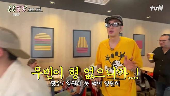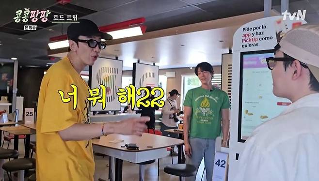 김우빈이 잠시 소지품을 맡기고 자리를 비운 사이 이광수와 도경수는 홀린 듯 신메뉴를 보게 됐다. 이광수는 "이거 멕시코에만 있다. 지금 안 먹으면 영원히 못 먹어"라고 했고, 도경수는 "우빈이 형 없으니까"라면서 감사인 김우빈의 카드를 꺼냈다. 급기야 이광수는 애플파이까지 주문하려 했다.