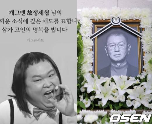 앞서 지난달 25일, 한국 개그계의 거장 전유성이 폐기흉 악화로 별세한 바. 1970년대부터 방송과 공연을 넘나들며 한국 코미디의 기틀을 세운 그는 수많은 후배들의 존경을 받았던 그의 부고에 모두 충격을 받았다. 그리고 불과 2주 사이에 전유성과 정세협, 두 개그맨의 연이은 부고 소식이 전해지며 개그계는 깊은 상실감에 빠진 것.
