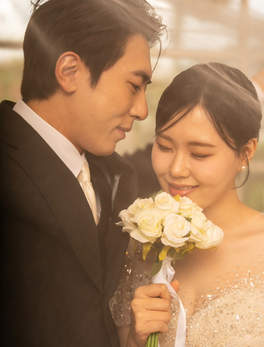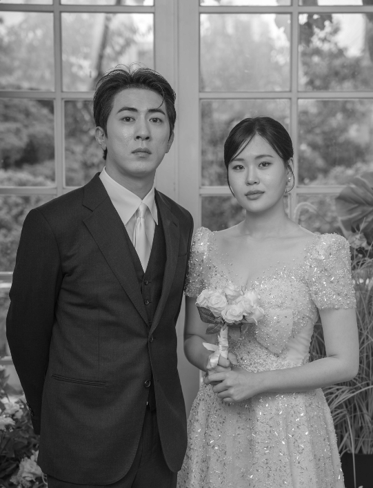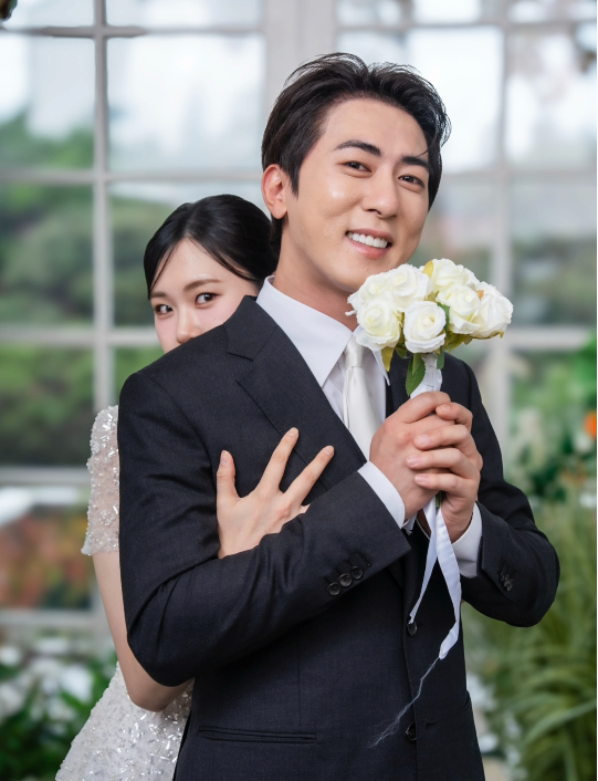 공개된 사진에는 흰색 부케를 들고 미소를 짓는 김원훈과 우아한 드레스를 입은 엄지윤이 함께 포즈를 취하고 있다. 따스한 햇살이 비추는 가운데 다정히 눈을 마주치거나, 장난기 섞인 표정을 짓는 등 실제 예비부부 같은 분위기를 연출했다.