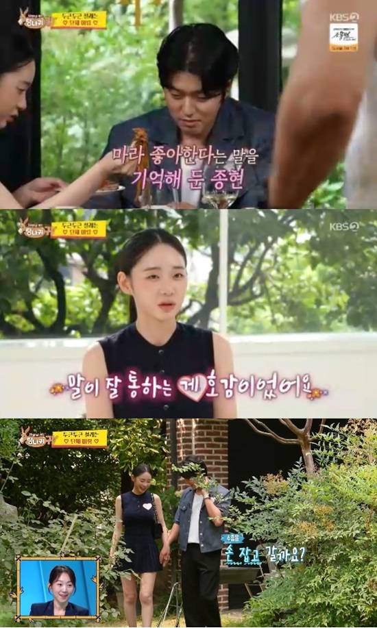김종현 역시 "처음부터 유정 씨가 제일 괜찮았다. 수수한데 당당한 느낌도 있었다"고 말했다.