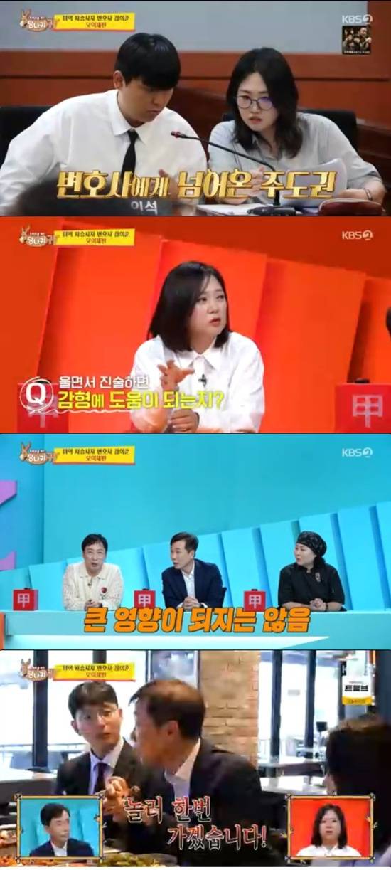 김희준은 울면서 진술을 하는 피고인들이 있는데 감형에 도움을 주는 것은 아니라고 했다. 김희준은 "실제 재판에서는 바쁜데 저러면"이라고 말끝을 흐리며 웃었다.