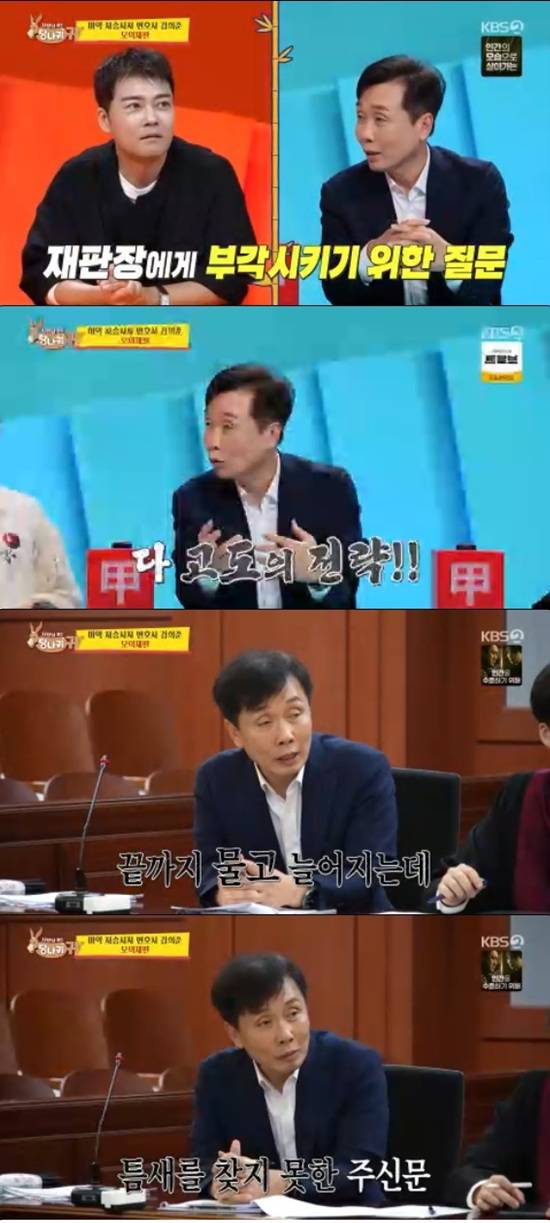 김희준은 전현무와 김숙이 "저급한 질문 아니냐"고 말하자 증인의 거짓말을 알아내기 위한 전략의 일부분으로 필요한 질문이었다고 했다.