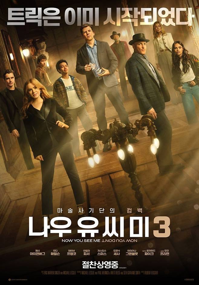 '나우 유 씨 미3'는 자취를 감췄던 호스맨들이 다시 뭉쳐 더러운 돈을 모으는 베로니카와 싸우는 이야기를 그린 작품으로 루벤 플레셔 감독이 메가폰을 잡고 제시 아이젠버그, 우디 해럴슨, 데이브 프랭코, 로자먼드 파이크 등이 출연한다.