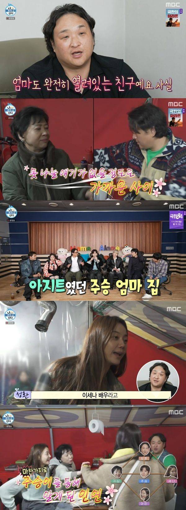 이후 또 다른 지인, 배우 이세나가 도착했다. 구성환은 "주승이 때문에 알게 된 동생같은 친구"라고 얘기했다. 이주승은 "저와는 15년 지기다. 제가 스케줄이 있었는데 너무 늦게 끝나서 없었다. 누나랑 엄마랑도 엄청 친하다"고 밝혔다.