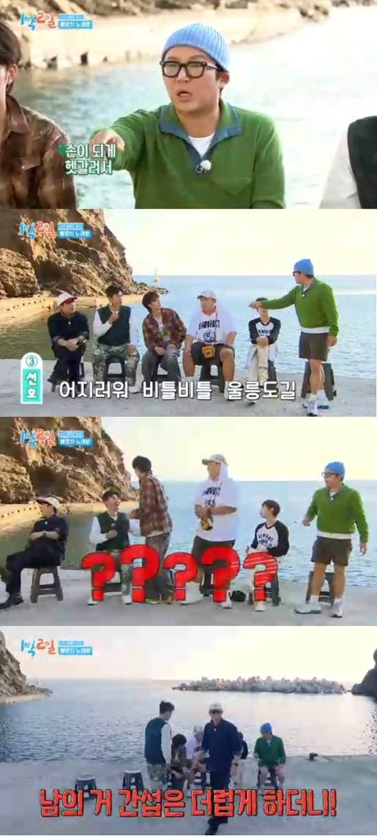 주종현PD는 울릉도에 대해 5다 3무라고 알려주면서 5다는 향나무, 미인, 바람, 물, 돌이라고 했다. 멤버들은 3무를 맞혀야 했다.