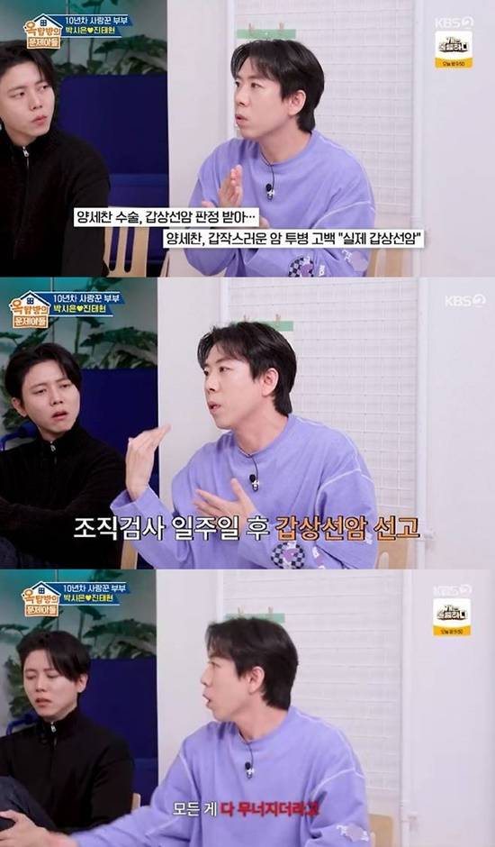 16일 방송된 KBS 2TV 예능 '옥탑방의 문제아들'에서는 갑상선암 수술 후 3개월 째 건강을 회복해가고 있는 배우 진태현과 아내인 배우 박시은이 출연했다.
