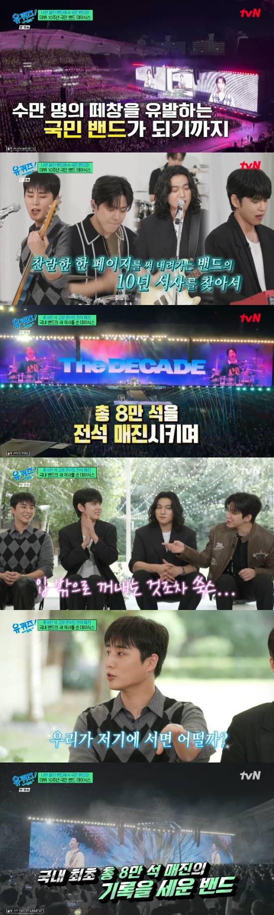 10일 방송된 tvN 예능 프로그램 '유 퀴즈 온 더 블럭'에서는 데뷔 10주년을 맞이한 데이식스가 출연해 이야기를 나눴다.