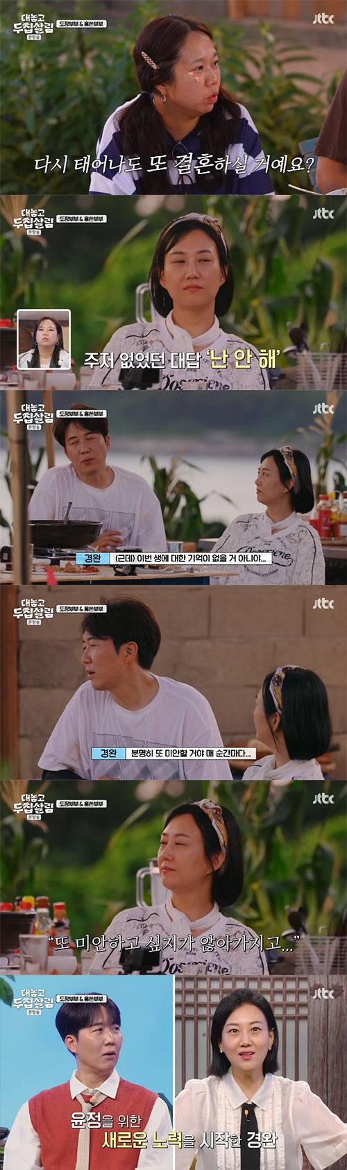 21일 방송된 JTBC '대놓고 두 집 살림'에서는 장윤정 도경완 부부, 홍현희 제이쓴 부부가 그동안 배우자에게도 털어놓지 못했던 속마음을 털어놨다.