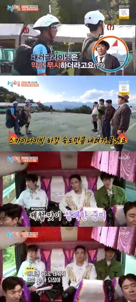 문세윤은 이준과 같이 뛸 강사를 향해 "이준이 스카이다이빙을 했는데 패러글라이딩 무시하더라"라는 얘기를 해줬다.