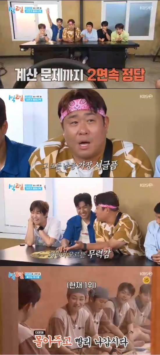 조세호는 사물 문제에 계산 문제까지 2연속 정답을 맞히며 분위기를 가져갔다. 문세윤은 한 문제도 맞히지 못하고는 "우울하다"고 말해 웃음을 자아냈다.