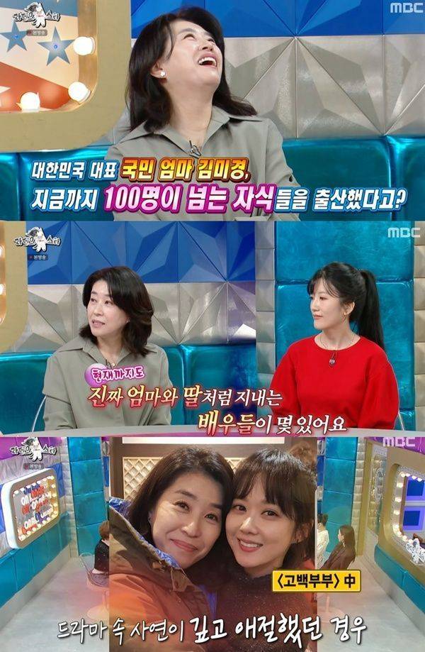 김미경은 유독 애정이 가는 딸 배우에 대해서 "작품이 끝나고 꼭 한 번 전화를 주는 배우들이 있다. 현재까지도 진짜 엄마와 딸처럼 지내는 배우들이 몇 있다. 장나라와 김태희다. 개인적인 친분으로 발전하더라. 드라마의 이야기가 깊었던 경우가 컸던 것 같다. 딸처럼 예쁘다"고 각별함을 드러냈다.