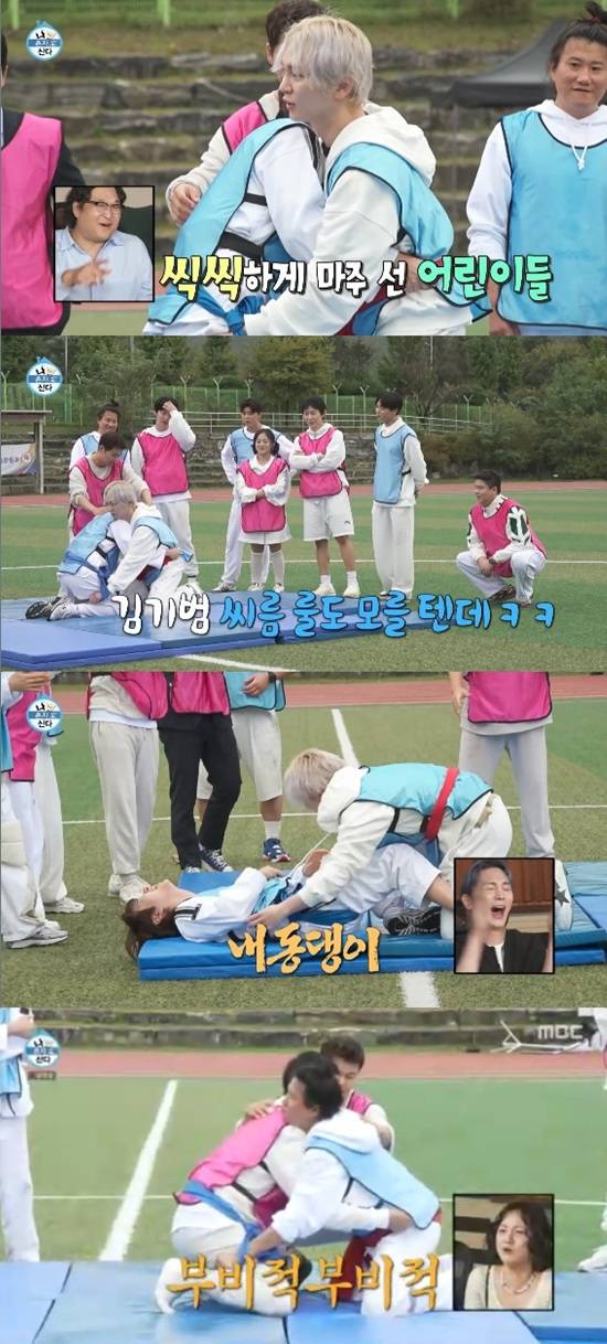 세 번째 경기로 맞붙게 된 기안84와 임우일은 샅바를 잡는 과정에서 서로 스킨십을 즐기는 듯한 모습을 보여 현장을 초토화시켰다.