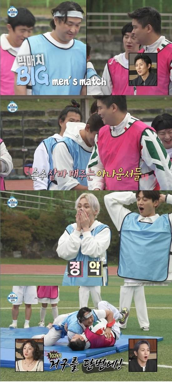 이날 전현무는 스페셜 매치로 씨름을 진행, 첫 경기로 구성환, 이장우의 헤비급 빅매치를 소개했다.
