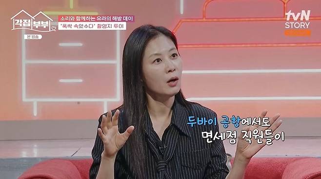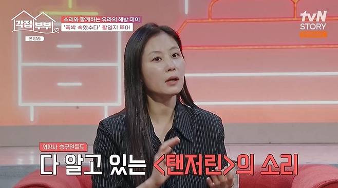 이날 문소리는 김민재 아내 최유라의 '해방데이'에 함께했다. 문소리는 '폭싹 속았수다' 촬영지에 가보고 싶다는 최유라를 데리고 오픈카를 탔다. 문소리가 "태어나서 오픈카 처음 타 봐"라고 하자 최유라는 "연애 때 한번 타봤다. 그때 너무 창피했는데, 오늘 덜 창피하다"라며 웃었다.