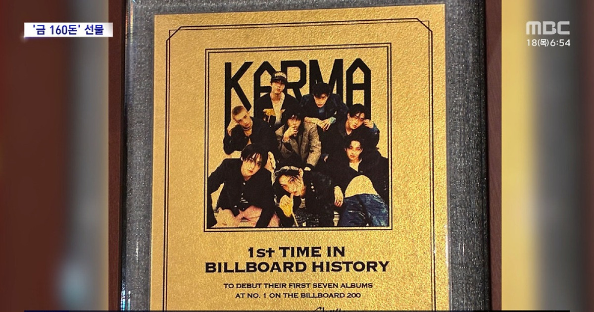 멤버들이 환한 미소를 지으며 손에 든 건 순금 액자라는데요.
