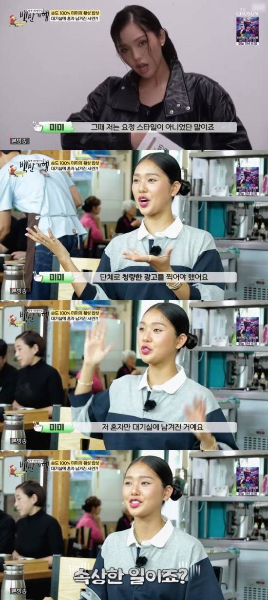 이에 미미는 "개인 스케줄이 아예 없었다. 집 지키는 강아지였다. 어떤 날은 화장품 광고를 찍는데 멤버들은 요정요정한데 저는 요정 스타일이 아니지 않나. 저는 원래 피부가 까무잡잡한 보이시한 스타일이었다. 단체로 청량한 광고를 찍어야 했는데 제가 콘셉트에 안 맞아서 저 혼자만 대기실에 남겨졌다"고 털어놨다.