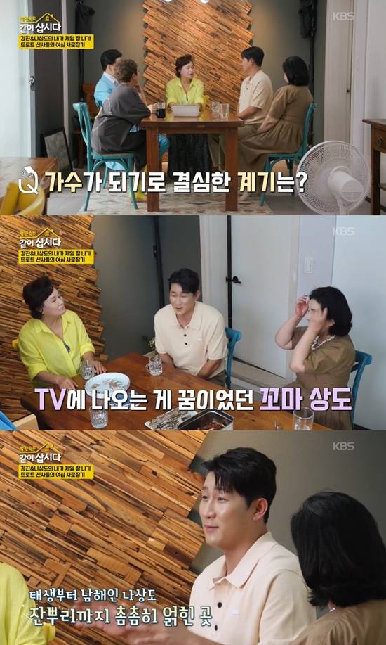 15일 방송된 KBS 2TV '박원숙의 같이 삽시다'(이하 '같이 삽시다')에서는 트로트 가수 강진과 나상도가 특별 게스트로 출연했다. '연하남' 나상도와 '노련미' 강진이 '같이 삽시다' 멤버들의 여심을 훔치는 대작전을 펼쳐 눈길을 끌었다.