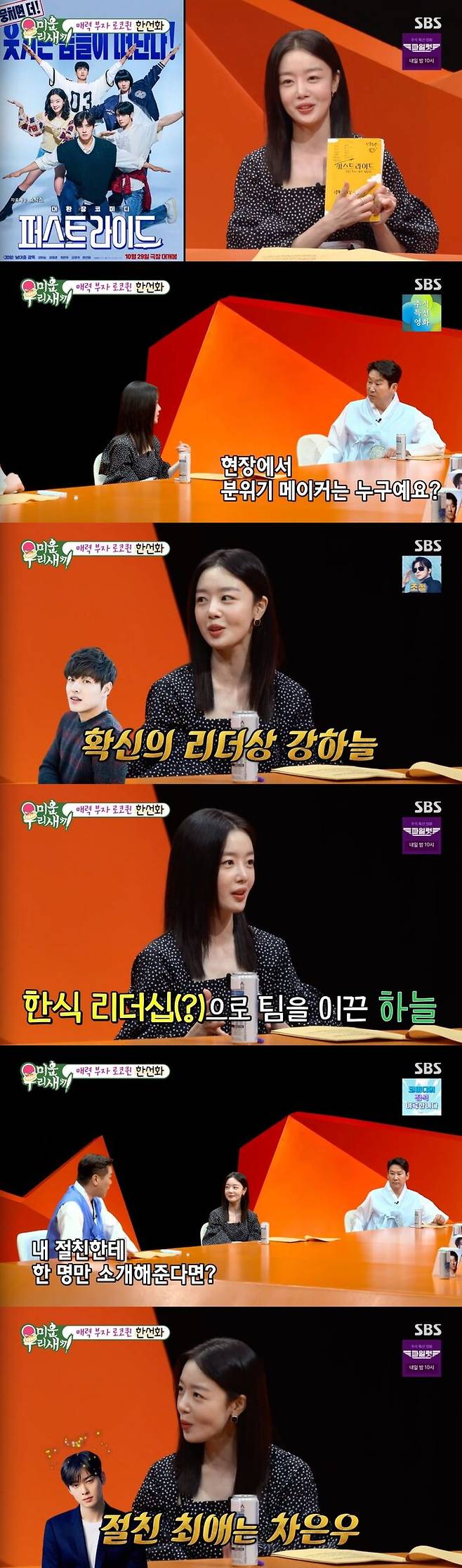 그리고 배우 한선화도 이날 스페셜 MC로 함께 해 눈길을 끌었다. 최근 영화 '퍼스트라이드'의 개봉을 앞두고 있다는 한선화는 강하늘, 차은우, 김영광, 강형석 중 현장 분위기 메이커로 강하늘을 꼽았다.