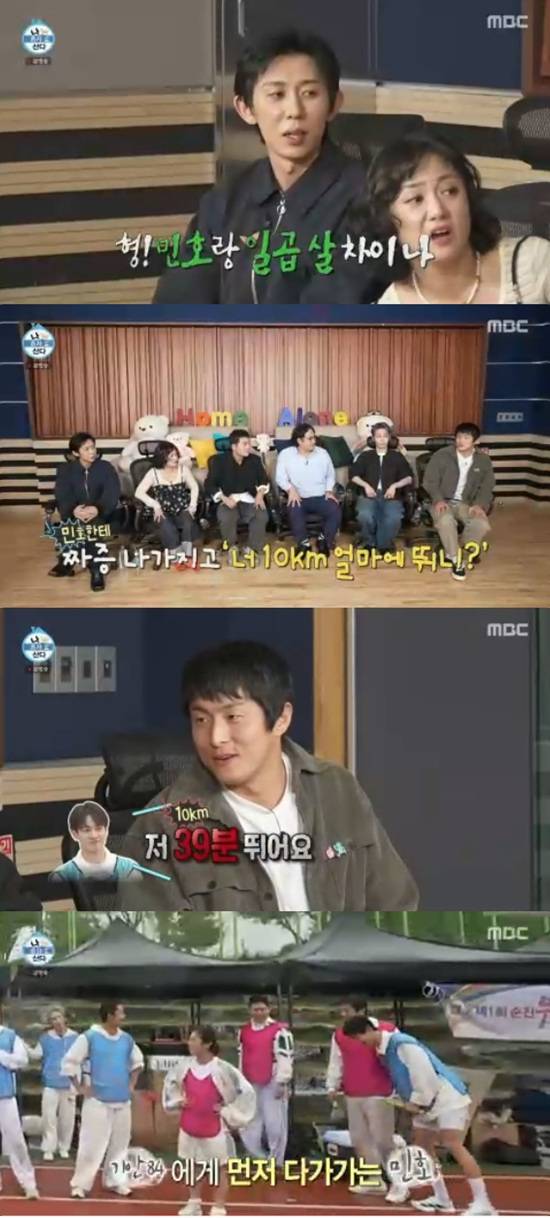 기안84는 "내가 10km를 45분에 뛴다고 했더니 민호가 자기는 39분에 뛴다고 했다"면서 "풀코스도 나보다 훨씬 잘할 것 같다"고 주눅이 든 모습을 보였다.