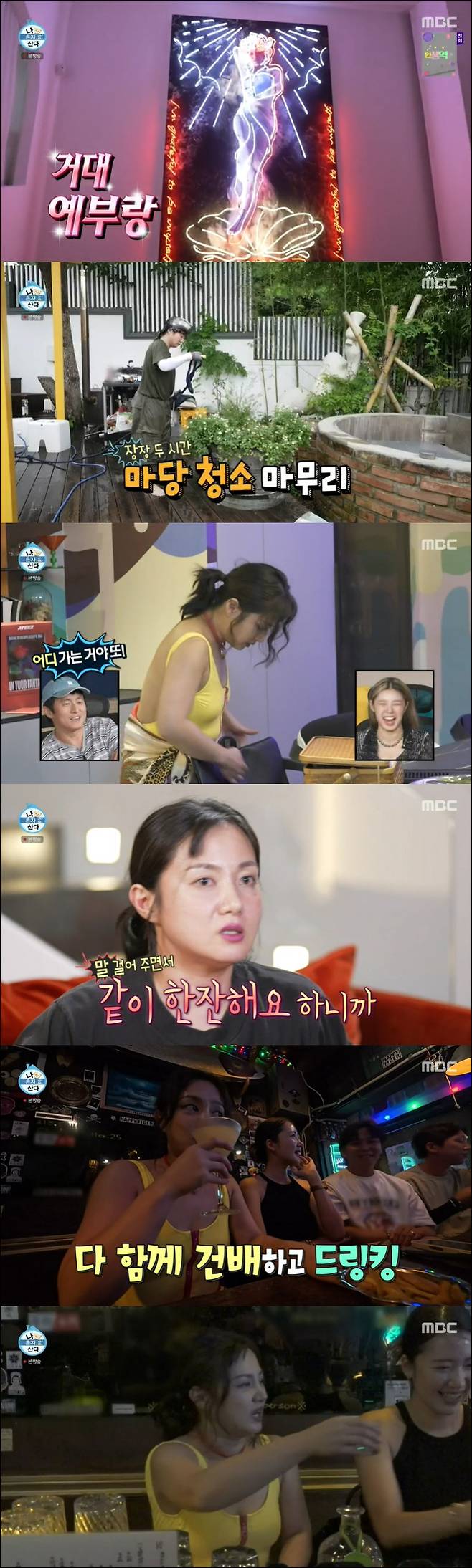 화려하게 입고 단골 바를 찾아간 박나래. 박나래의 등장에 사장님과 손님들이 모두 박나래를 반겼다. 박나래는 "우리 동네는 혼술 느낌이 별로 안 난다. 말 걸어주고 '같이 한잔 하자' 하니까 다 친해지고 저도 너무 좋아서 분기별로 한번씩 간다"고 밝혔다.