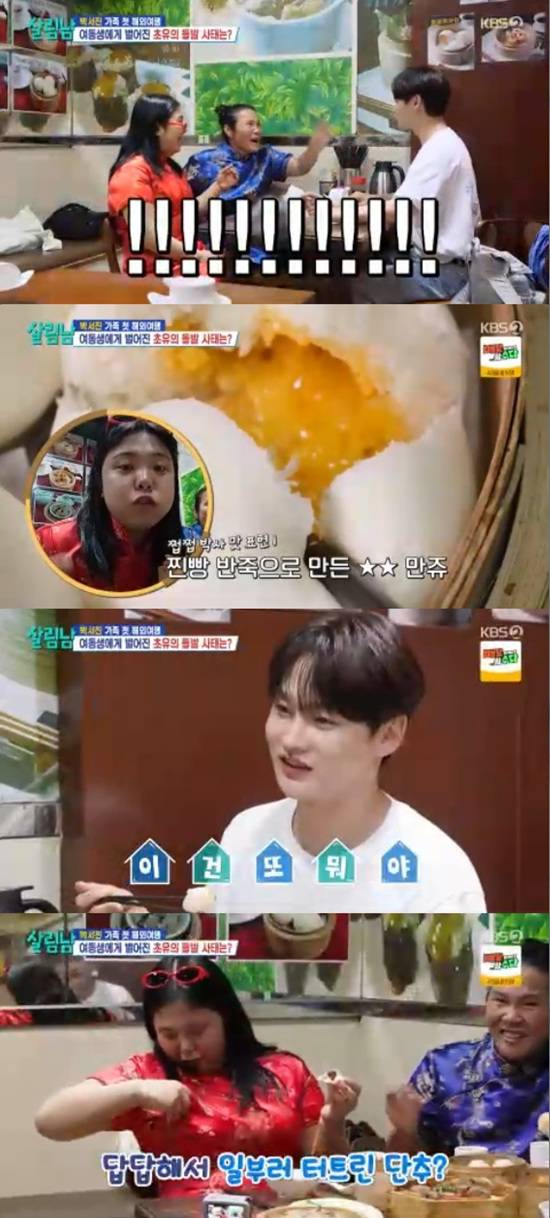박효정은 박서진의 뱃살 공격에도 개의치 않고 딤섬 맛 설명을 시작하던 중 치파오 단추가 터져 웃음을 터트렸다.
