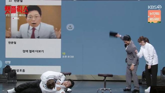 그러던 중 이상훈은 사고가 났고, 효과음이 계속 나오자 계속 굴러야 했다. 박성광은 "그만해. 대사 해야 해"라고 외쳤다. 박성광이 다급하게 "사람 불러야 해"라고 외치자 채팅에선 한문철을 부르라고 말했다.
