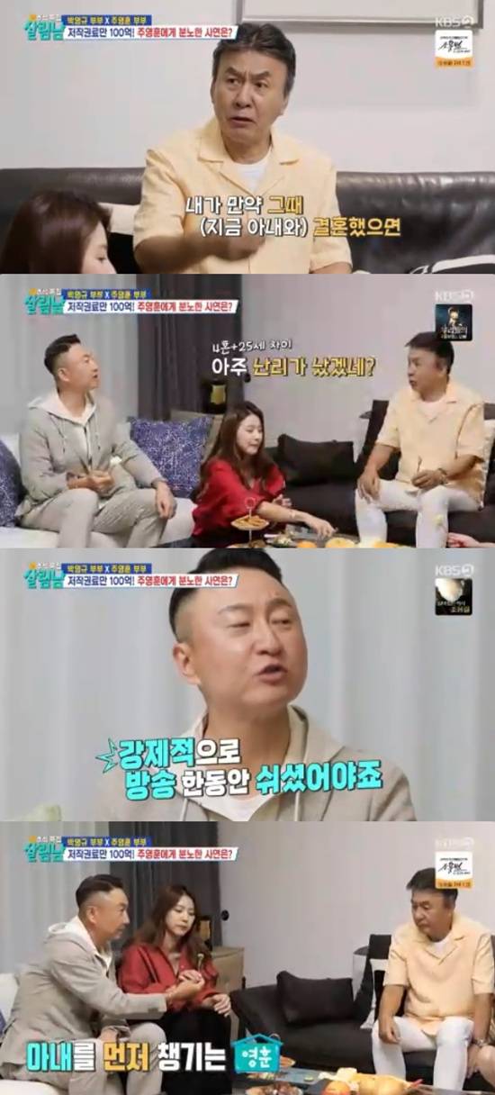 박영규는 주영훈과 이윤미가 12살 차이라는 얘기를 듣고 "내가 그때 결혼했으면 아주 난리가 났겠네"라며 웃었다.