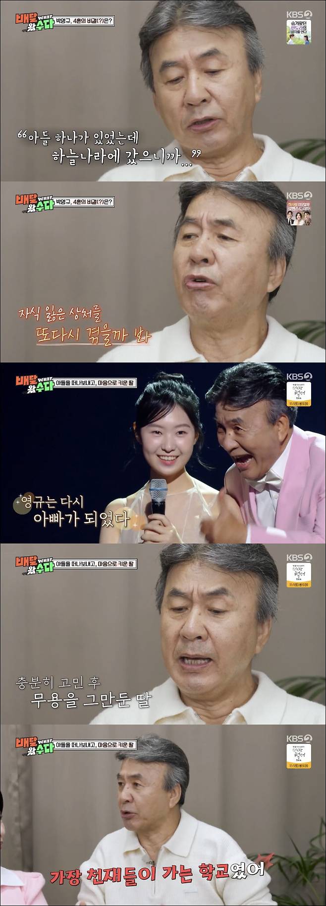 박영규는 "그 딸을 초등학교 5학년 때 만났는데 지금 고3이다. 내가 잘 키웠다. 무용을 하다 보니까 전국에서 대상도 받았다. 그게 굉장히 힘드니까 공부를 해야 될지 무용을 계속 할지 고민하더라"라며 "'네가 원하는 대로 해라. 하지만 아빠는 네가 좀 더 큰 꿈을 꿨으면 좋겠다' 했더니 고민하다 무용을 포기하더라"라고 밝혔다.