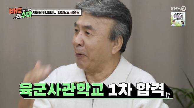 박영규는 "근데 다른 애들에 비해 학업이 늦지 않았냐. 그 용기를 주려고 6년 동안 많이 노력했다. '네가 노력하는 만큼 올라갈 수 있다'고 가르쳤는데 이번에 나도 모르게 육군사관학교 시험을 본 거다. 합격을 해버렸다"며 "우리 때 육사는 가장 천재들이 가는 학교였다. 지금도 그럴 거다. 근데 그걸 합격한 거다. 내가 말도 못하게 행복했다. 내가 막 친구들 만나서 오늘은 내가 사겠다고 했다"고 기쁜 소식을 알렸다.