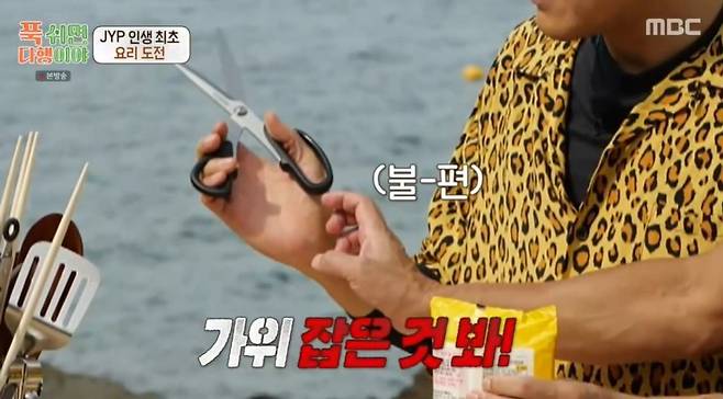 이후 박진영은 "만 53년 만에 처음으로 요리에 도전하는 날"이라며 "태어나서 안 해본 게 요리, 빨래, 입금, 출금, 송금"이라고 밝혔다. 가위도 제대로 못 잡는 걸 본 박준형은 타박하기 시작했고, 데니안은 "너무 충격인데?"라며 입을 다물지 못했다.