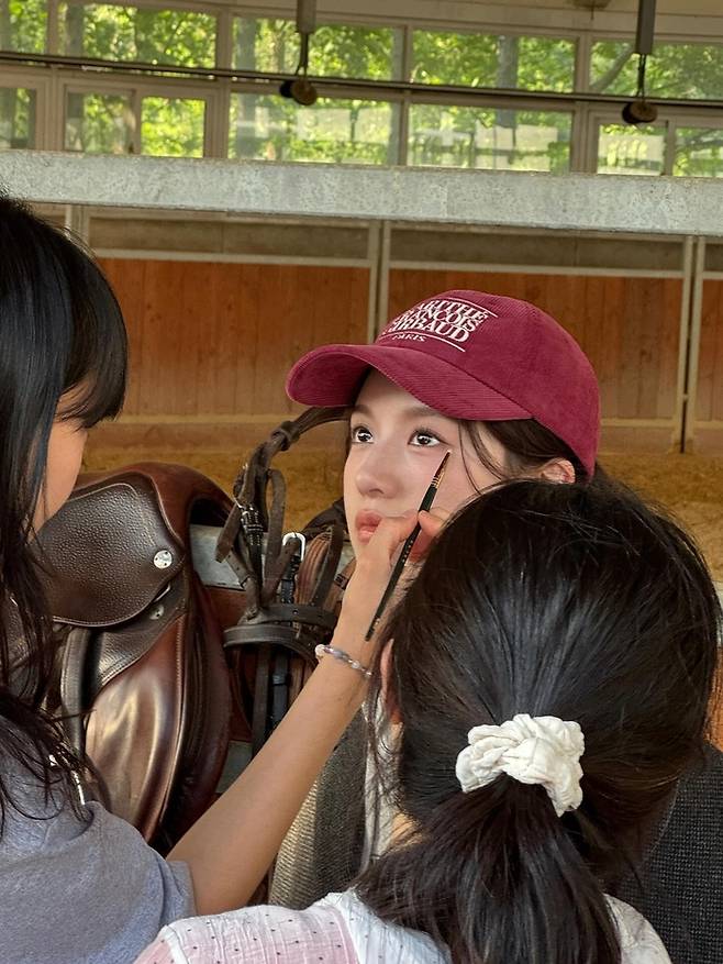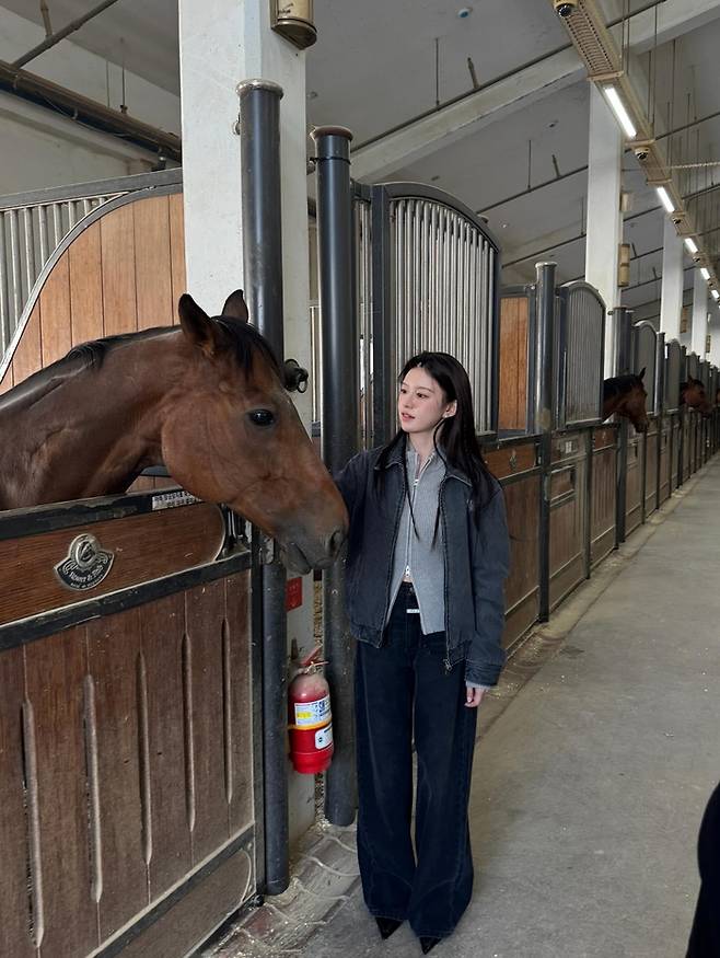 공개된 사진 속 고윤정은 마사에서 말들과 함께하는 촬영을 진행하는 모습이다.