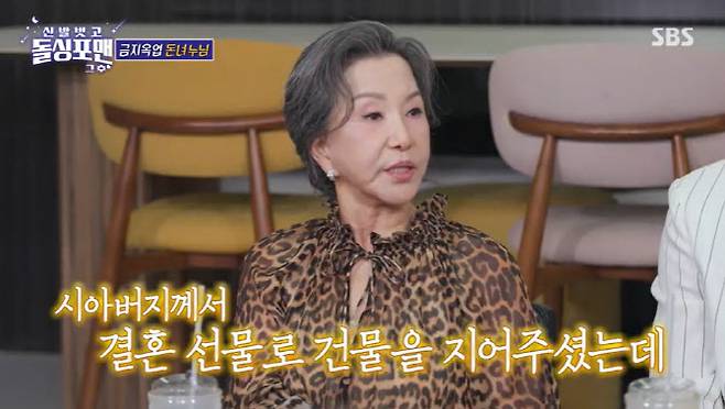 “시댁도 부자였다고 하더라. 결혼 선물로 건물을 받았다고 하더라”는 질문에 서권순은 “시아버지께서 결혼 선물로 건물을 지어주셨다”고 털어놨다.