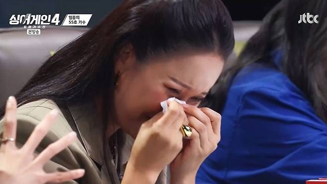 이어 '일종의' 55호 가수는 '일종의 고백'으로 마음을 울렸다. 백지영은 "살면서 이렇게 제 마음이 무너질 정도로 힘들거나 슬프거나 그런 순간이 그렇게 많이 있지는 않았다. 오늘 55호님의 노래를 들으면서 그때가 생각났다. 제가 어딘가 숨어서 무언가에 위로받고 싶을 때 필요했던 노래였던 것 같다. 이거 되게 싼 눈물인데"라며 오열했다.