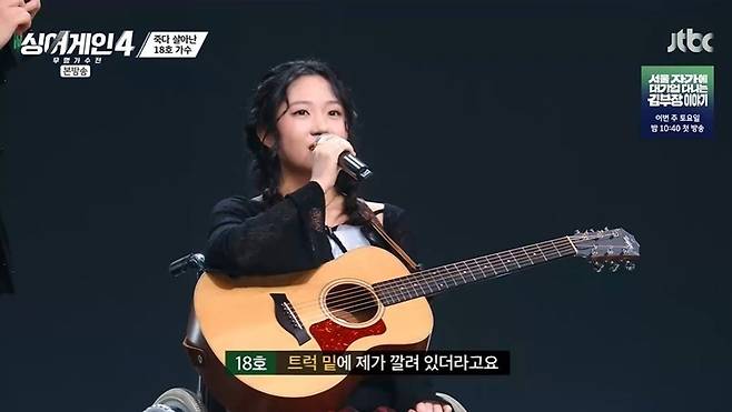 '죽다 살아난' 18호 가수는 휠체어를 타고 등장했다. 18호는 "오늘도 못 올 뻔했다. 예심 합격하고 준비하던 와중에 1톤 트럭에 치였다. 제가 치인 것도 모르고 몇 미터를 가서 허리도 여섯 군데나 부러지고 온몸이 다쳤다"라고 털어놓았다. 간절한 노래에 18호는 올 어게인을 받았다.