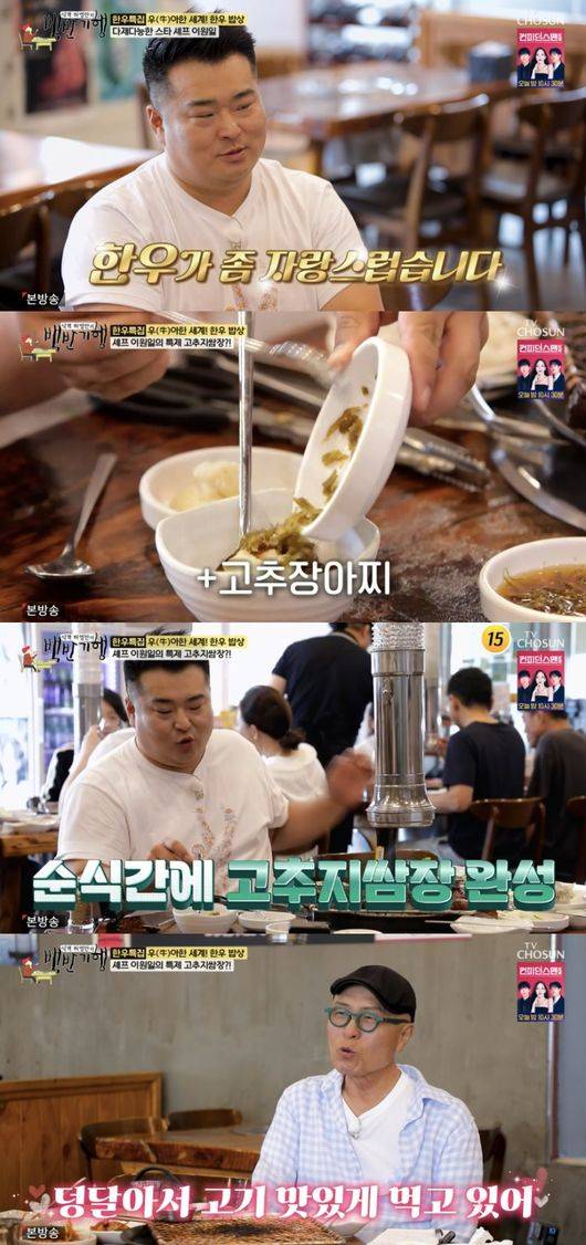 한편, 이원일은 한우 고기를 구워 먹던 중 즉석에서 고추지쌈장을 만들었다. 고추장아찌, 쌈장, 다진마늘, 통깨를 넣는다는 그는 순식간에 완성해 눈길을 끌었다.