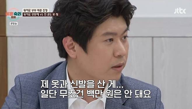 심지어 남편은 "전 저를 위해 쓴 돈이 없다"라고 주장했지만, 아내는 "제가 다 사준 거다. 남편이 오늘 신고 온 신발부터 제가 다 사준 거다. 내 카드로 사줬으니 (돈 쓸 일이 없지)"라고 답답해했다. 그런데도 남편은 "제 옷과 신발을 산 게 백만 원은 안 된다"라며 포기하지 않았다.