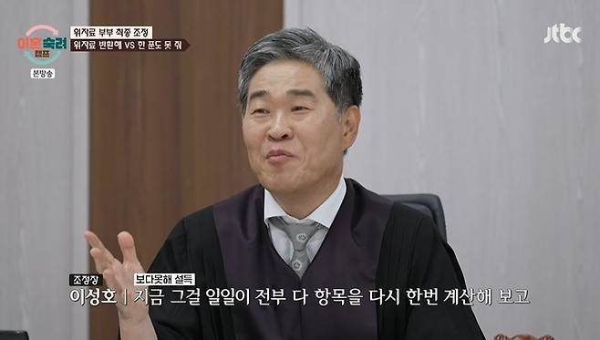 이날 새로운 조정장이 등장했다. 서장훈은 "이성호 조정장님은 27년간 판사로 재직하면서 특히 '어금니 아빠' 사건의 담당 판사로도 유명하다"라며 "특이 사항이 있다. 배우 윤유선의 남편"이라고 소개했다.