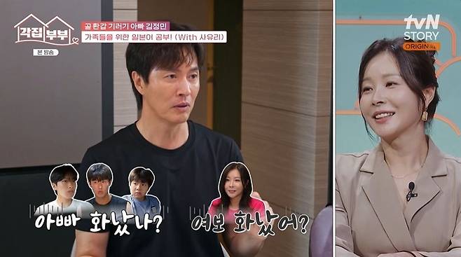 김정민은 "가족들 앞에서 일본어로 떳떳하게 대화를 나누고 싶다"란 포부를 밝히며 공부 방법을 바꿔보려 했다. 원어민에게 배우려는 것. 이어 김정민의 여사친이 등장했다. 바로 사유리였다. 사유리는 아들 젠의 근황에 관해 "만 나이로 4살이고, 한국 나이로 6살이다"라고 밝혔다.