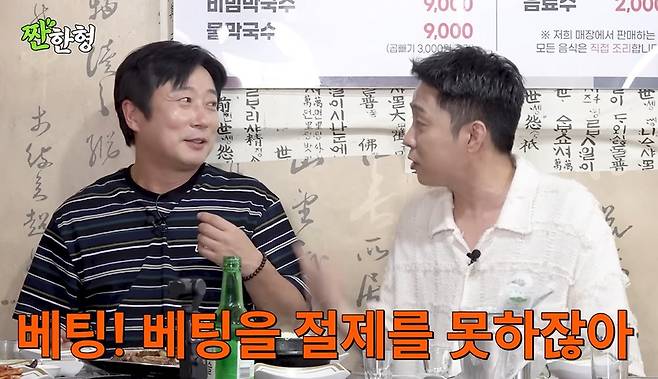 이날 신동엽은 과거 함께 여행을 갔던 이야기를 꺼내며 "여럿이서 술 먹고 놀았는데, 수근이랑 호동이는 참 절제를 잘하더라"고 회상했다. 이를 들은 은지원은 놀라며 "수근이 형이 절제를 하냐. 술만 절제하나보다"고 의미심장한 말을 내뱉었다. 이어 "베팅은 절제를 못 하지 않냐"며 절친다운 매운맛 발언을 해 웃음을 자아냈다.