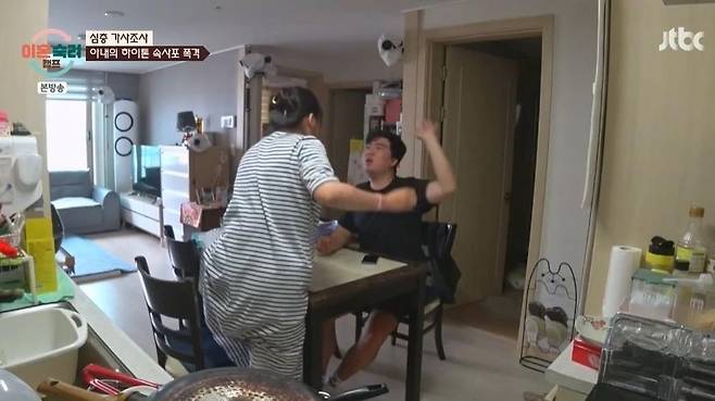 두 사람의 대화가 시작되자, 아내의 강도 높은 공격이 이어졌다. 서장훈은 "쏘아붙이는 말투는 개선이 필요하다"라며 "저 상황에서 남편은 미치는 거다"라고 아내의 공격적인 언행를 지적했다. 급기야 아내는 분노를 참지 못 하고 손까지 들었다.