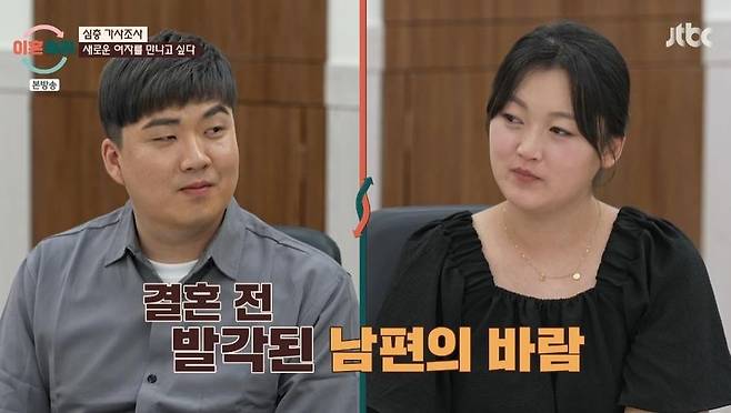 아내는 "연애할 때부터 지금까지 여자 문제가 있었다"라고 말했다. 남편은 웃으며 바람을 많이 폈다고 고백해 충격을 안겼다. 아내는 남편과 결혼 전 동거 2년 차 때 쿠싱 증후군으로 입원을 했고, 그 사이 남편이 바람을 폈다는 것.